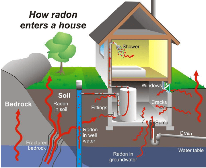 Radon is a radioactive gas that can be present in homes all over the United States and is the leading cause of lung cancer in non-smokers and second overall cause of lung cancer according to EPA estimates. It appears from the natural breakdown of uranium in soil, rock, and water and can easily get into the air you breathe.